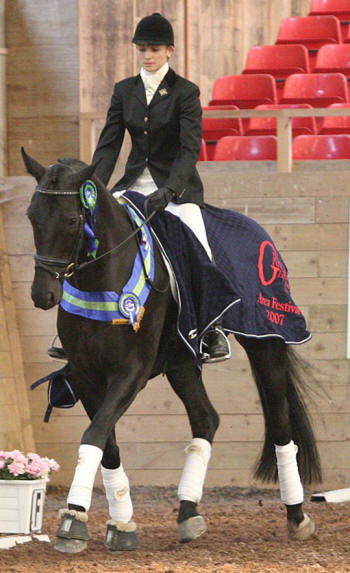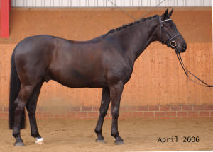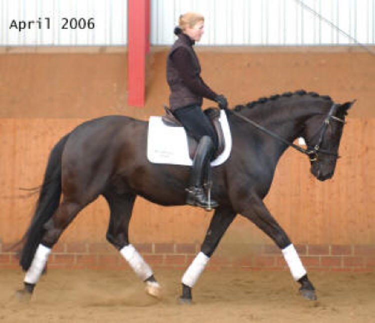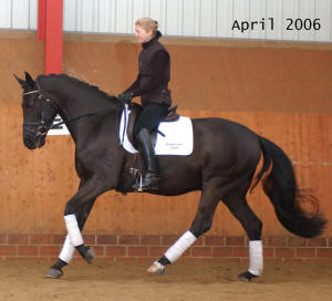 Drambuie (stable name 'Dennis') was trained and ridden by the International Grand Prix rider Natalie Hobday in Germany from beginning 2005 until November 2006. 'Dennis' returned home to Bradstone Stud in November 2006 for me to ride him. "What is the point of having wonderful horses if you are unable to enjoy them?" However, I was unable to ride as much as intended and 'Dennis' was sold Spring 2007 to the Dennis family (how appropriate!) in Devon, England. The very talented young rider Holly Dennis has already been very successful competing Drambuie at dressage. They became South West British Area Novice 22 (open class) winner Oct 2007 and they won the BYRDS (British Young Rider Dressage Scheme) Novice 22 with 73.45% in April 2008. They were 3rd at the Regionals in restricted Elementary February 2009.