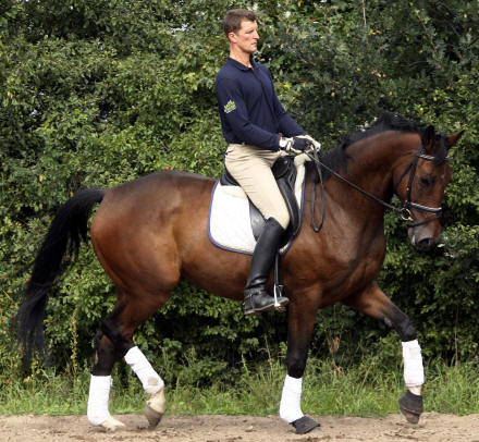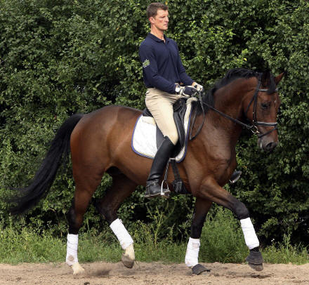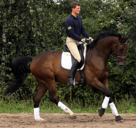 Loris is in training since autumn 2010 with Andre Hecker at Schillerslage, Germany (near Hannover airport) to be trained at a higher level and is now ready to be sold. Andre is a Grand Prix competitor but also a specialist in educating young horses. Andre was 5th at the German Grand prix Championships 2011 for senior riders.