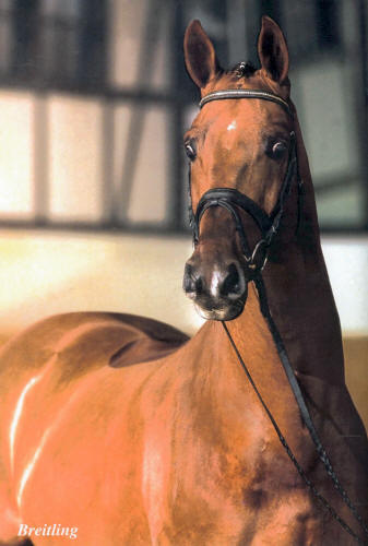 Breeding Record: he was approved in other Oldenburg in his youth and initially covered the mayors of the Wittig/Tiemann family. Breitling W's reading product from his first covering stint are beginning promising careers in the dressage sport. Five competition sports horses have been registered with the FN and all five have been successful so far. Presented first-class finalist in the Federal German Dressage Championships: Balalaika W and Borgward W.